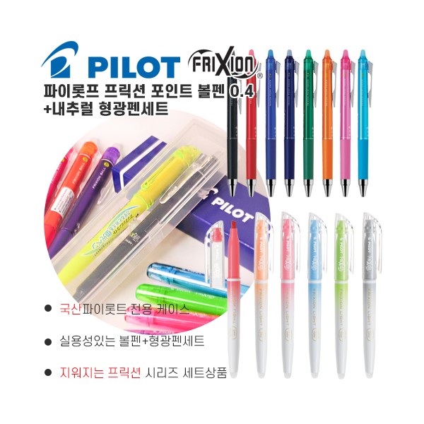 파이롯트 지워지는 프릭션 포인트볼펜0.4+내추럴 형광펜세트