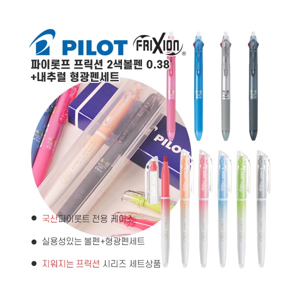 파이롯트 지워지는 프릭션 2색볼펜0.38+내추럴 형광펜세트