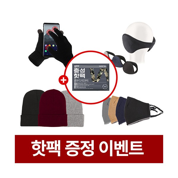 - 무지 니트 터치 장갑(블랙, 블루, 레드, 핑크, 네이비) / 왕 귀마개(블랙, 네이비, 그레이) / 패션 롱 비니(블랙, 네이비, 버건디, 그레이, 브라운) / 무지 방한 마스크(블랙, 네이비, 그레이, 브라운)