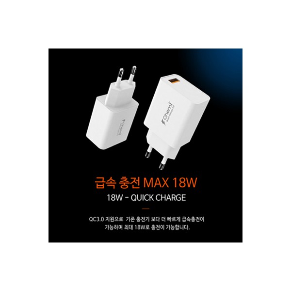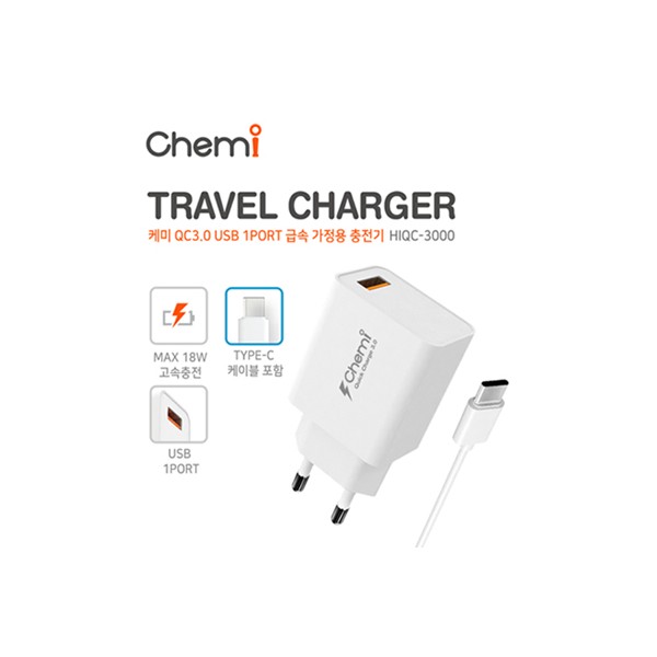 케미 HIQC-3000 1포트 QC3.0 가정용 급속충전기(C타입충전케이플포함)