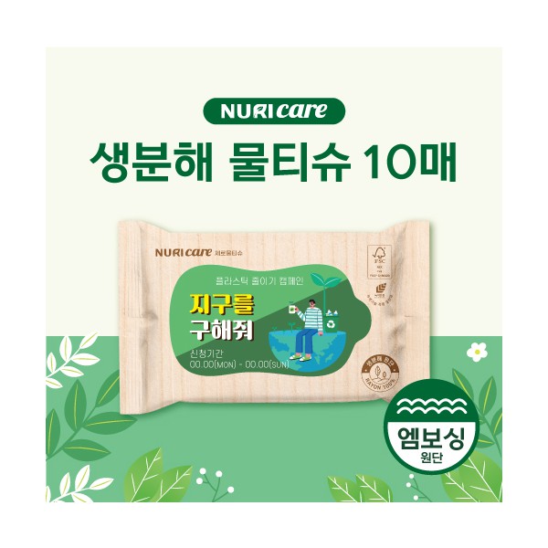 [FSC인증원단] 생분해 물티슈 10매 (엠보싱)