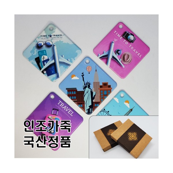 EXCASE 국산 정품 고급 인조가죽 사각 네임택(양면 풀칼라 인쇄)