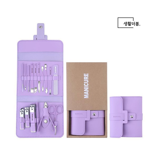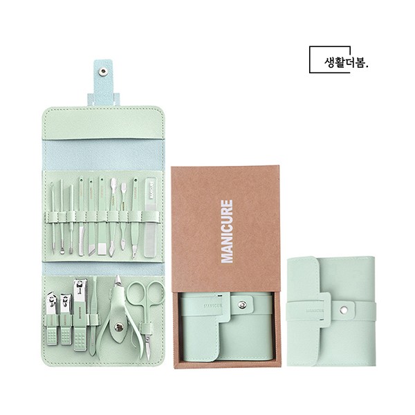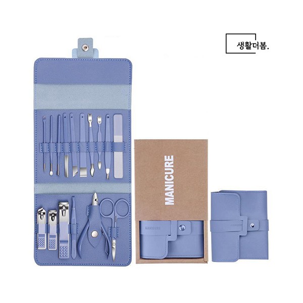 생활더봄 파스텔 가죽 손톱깎이 세트 네일케어도구 16종 5colors