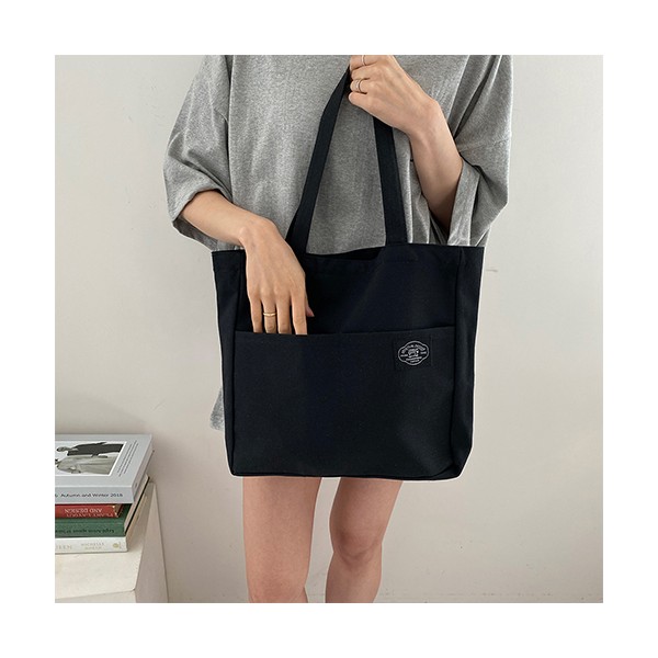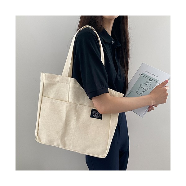룩앳걸 더블포켓 무지 여성 데일리 숄더 에코백 3color 33x31x7.5cm