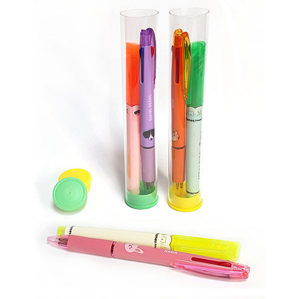라메스프렌즈 캐릭터 3색볼펜과 형광펜 세트로 구성