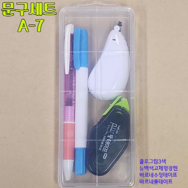 문구세트A형-7(3색볼펜+형광펜+수정테이프+풀테이프)