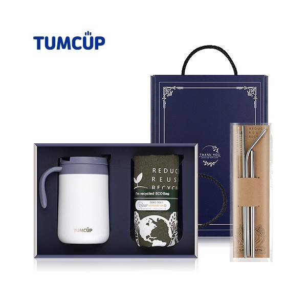 텀컵 에코 선물세트 TS-500ES_텀블러1+에코백1+스텐빨대4종 기프트세트