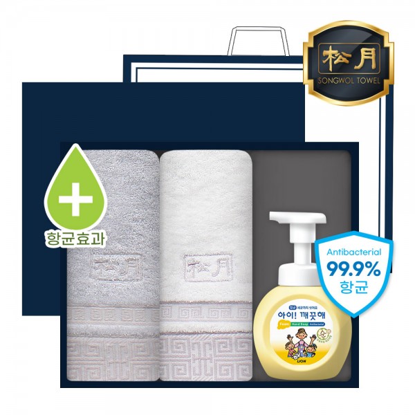 송월 완벽 항균 케어 3P 세트 (핸드워시 1개 + 격자40 타올 2매)