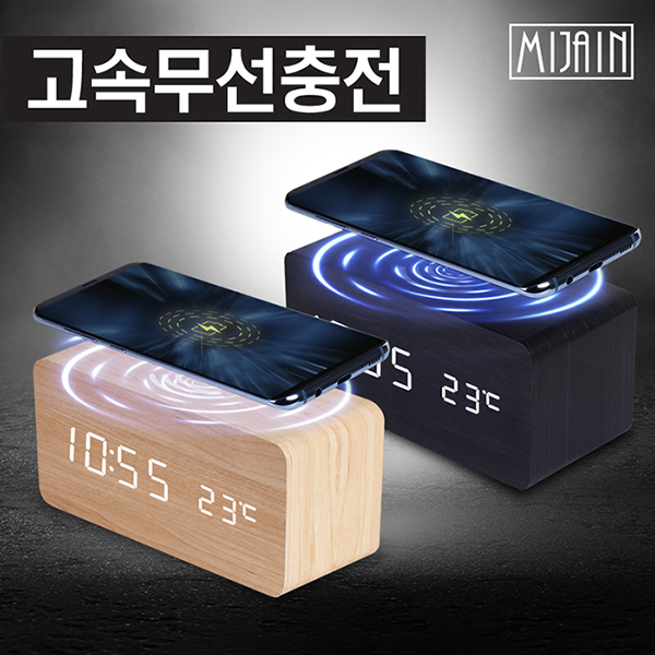 미자인10W고속무선충전LED나무시계