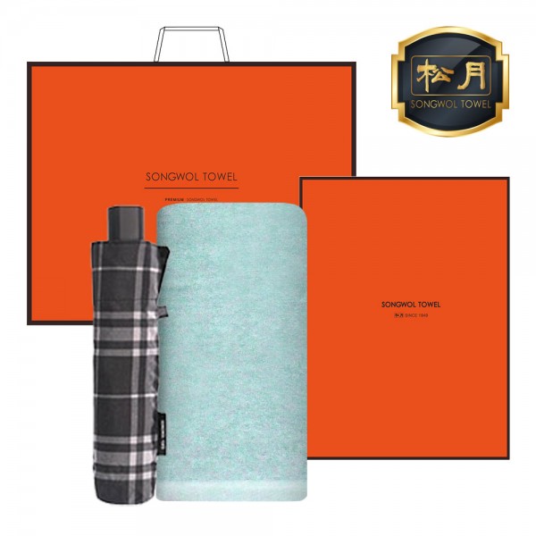 송월 타월 우산 2매 콤보세트 (라이트무지 + 3단모던체크)