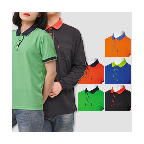 남자 여자 행사 PK 유닛 배색 반팔 긴팔 폴로 카라 티셔츠 (S-3XL)