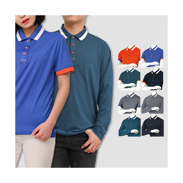 남성 여성 단체 행사 스판 톤업 반팔 긴팔 카라 티셔츠 (S-3XL)