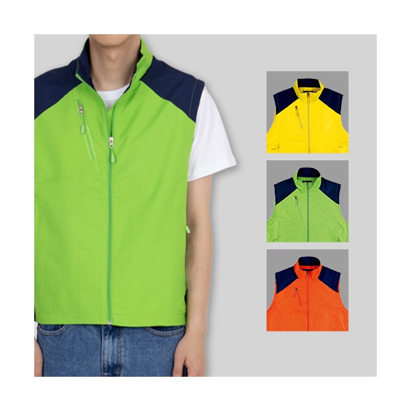 남자 여자 단체 행사 유닛 배색 카라 조끼 (M-3XL)