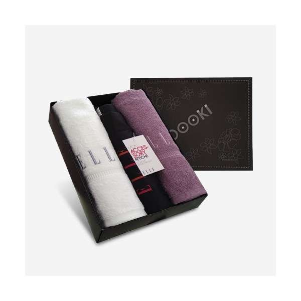 엘르 이엘타올2매 + 무지로고 3단우산 세트