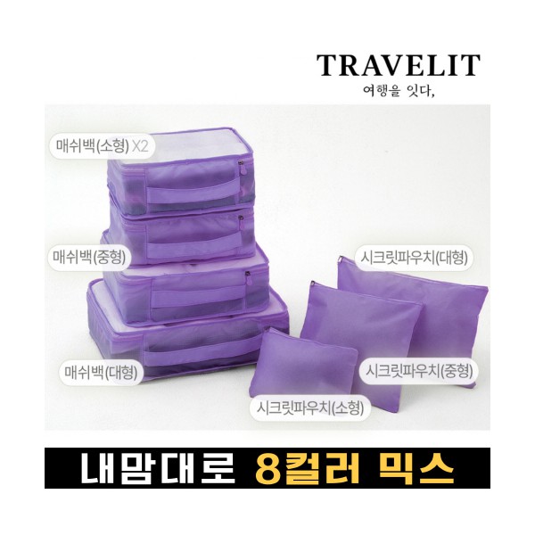 트래블잇 내맘대로 8컬러 믹스 여행용파우치 7종세트-퍼플