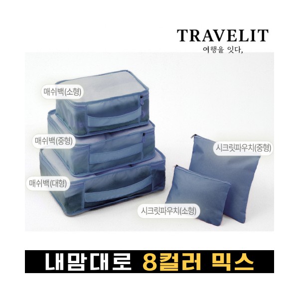 트래블잇 내맘대로 8컬러 믹스 여행용파우치 5종세트-네이비