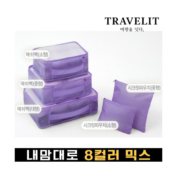 트래블잇 내맘대로 8컬러 믹스 여행용파우치 5종세트-퍼플