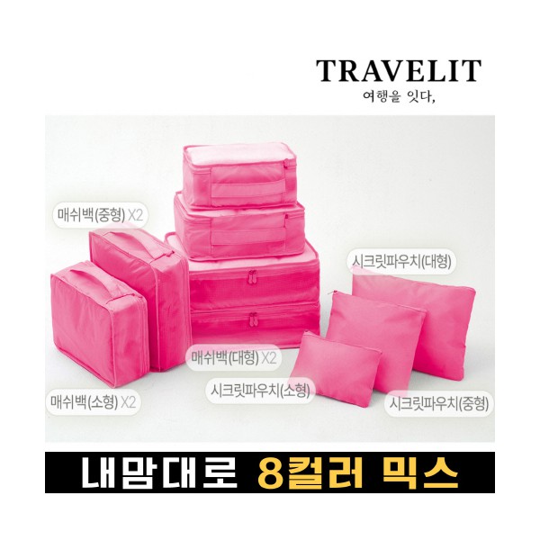 트래블잇 내맘대로 8컬러 믹스 여행용파우치 9종세트-핫핑크