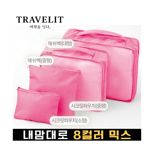 트래블잇 내맘대로 8컬러 믹스 여행용파우치 4종세트-핫핑크