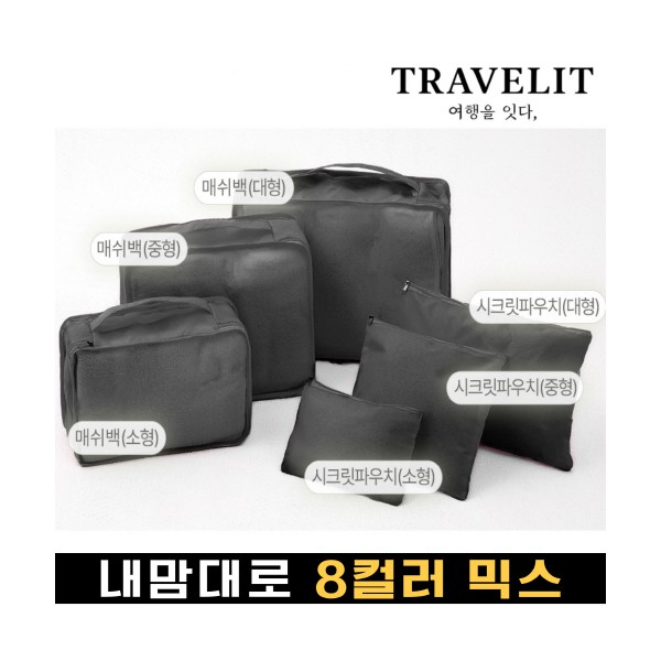 트래블잇 내맘대로 8컬러 믹스 여행용파우치 6종세트-블랙