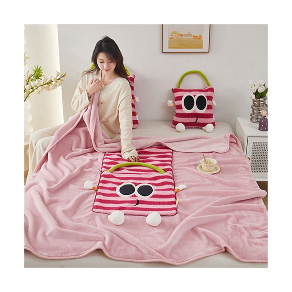 로페리아 팜아이즈 플란넬 극세사 쿠션 담요_중,에코백포함(0209423)