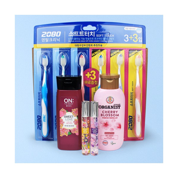 | 기타사항 | 2080 소프트터치 이중 미세모칫솔 3+3 +LG생활건강 바디워시+샴푸 + 부케가르니 바디미스트2종 + 끈케이스 스티커 제작 및 부착 별도문의 |