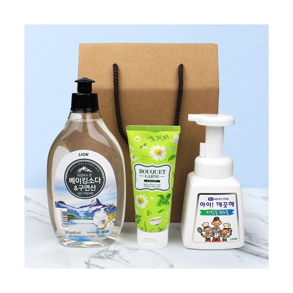| 기타사항 | 베이킹소다 구연산 주방세제 500ml + 주방전용 키친 아이깨끗해 + 부케가르니 캐모마일 핸드크림 + 끈케이스 스티커 제작 및 부착 별도 문의 |