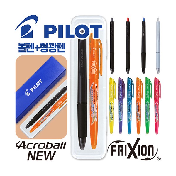 파이롯트 뉴아크로볼볼펜0.7+지워지는프릭션라이트형광펜세트