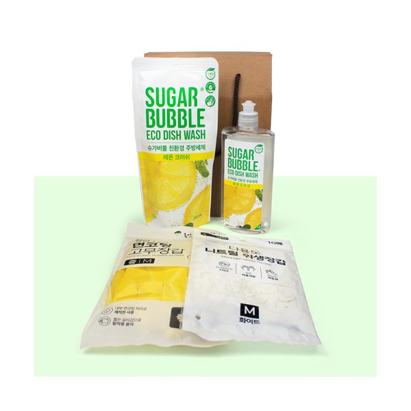 | 기타사항 | 슈가버블 주방세제 280ml+리필280ml + 면코팅 고무장갑 + 니트릴장갑 10매 + 끈케이스 스티커 제작 및 부착 문의 |