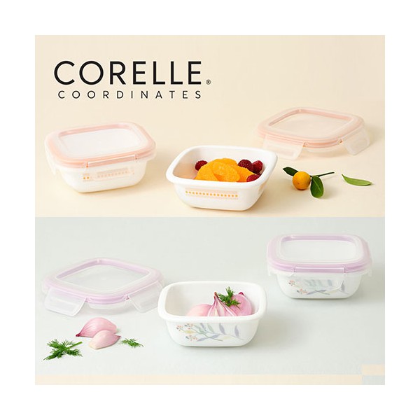 코렐_코디네이츠 밀크글라스 밀폐용기 정사각 2종 (산호세/자카드밴드)