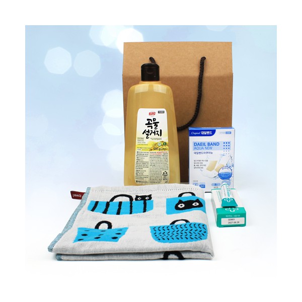 | 기타사항 | 주방필수품 애경 곡물설거지 주방세제 500ml + 대일밴드 아쿠아 방수밴드 오리지널 8매 대형4매 + 닥터스킨 상처연고 + 순면 캐릭터 주방타올 + 끈케이스 스티커 제작 및 부착 별도문의 케이스 변경 가능 슬기로운안전생활 / 어려운이웃 복지사각 / 치매예방 / 금연홍보 (상세페이지 참조) |