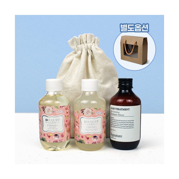 | 기타사항 | 부케가르니 샴푸+바디워시+나드 트리트먼트+에코주머니+창케이스 추가시 별도문의 에코파우치 실크1도 인쇄 별도문의 창케이스 추가 별도문의 |