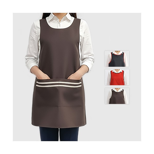남자 여자 주방 공방 서빙 주머니 두 줄 라인 원피스형 앞치마