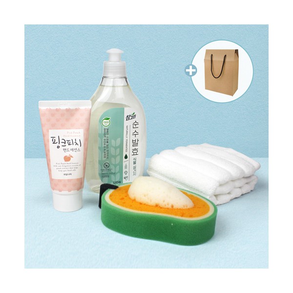 | 기타사항 | 참그린 주방세제 480ml + 순면 골지 주방타올 + 과일 수세미 + 과일나라 핸드크림 + 끈케이스(이미지 변경 가능) 스티커 제작 및 부착 별도문의 케이스 실크1도인쇄 별도문의 케이스 이미지 변경 가능, 상세페이지 참조 (어려운이웃 복지사각 / 치매예방 / 금연홍보 / 슬기로운 안전생활) |