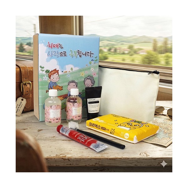 | 기타사항 | 부케가르니 샴푸 + 바디워시 + 폼클렌징 + 나드 미세모 스몰헤드 컴팩트 칫솔 + 쿨맥스 민트 치약 + 에코파우치+치매예방 케이스+케이스 변경 가능 케이스 이미지 변경 가능, 상세페이지 참조 (무지케이스 / 어려운이웃 복지사각 / 치매예방 / 금연홍보 / 슬기로운 안전생활) 스티커 제작 및 부착 별도문의 |