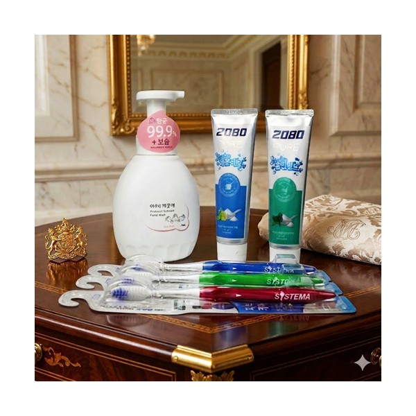 | 기타사항 | 핸드워시 아이깨끗해 450ml + 2080 퓨어치약 125g + 시스테마 치석케어 칫솔 3개 + 끈케이스+ 케이스 선택가능 케이스 이미지 변경 가능, 상세페이지 참조 (무지케이스 / 어려운이웃 복지사각 / 치매예방 / 금연홍보 / 슬기로운 안전생활) 스티커 제작 및 부착 별도문의 케이스 실크1도인쇄 별도문의 |