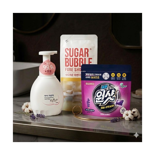 | 기타사항 | 아이깨끗해 핸드워시 450ml + 슈가버블 버블원샷 캡슐세제 + 슈가버블 섬유유연제 + 끈케이스 + 케이스 선택 가능 스티커 제작 및 부착 별도문의 케이스 실크1도인쇄 별도문의 케이스 이미지 변경 가능, 상세페이지 참조 (무지케이스 / 어려운이웃 복지사각 / 치매예방 / 금연홍보 / 슬기로운 안전생활) |