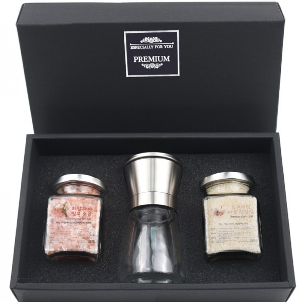 히말라야 굵은핑크소금+마늘소금+고급 스텐 그라인더 선물세트 (쇼핑백포함)