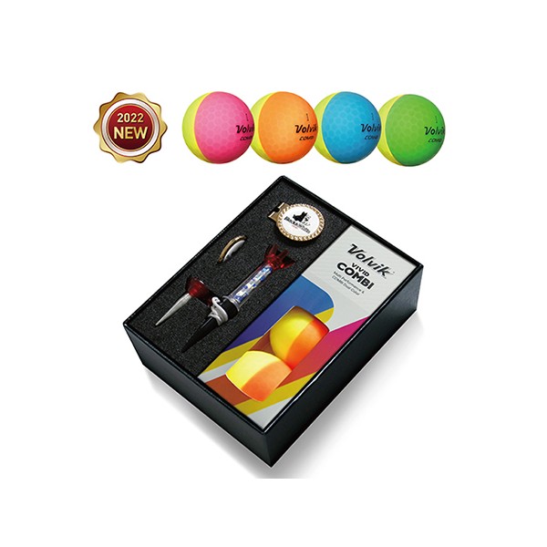 [EGVVC-205G] 볼빅 VIVID 콤비 골프볼3구+볼마커(골드)+클립+티세트