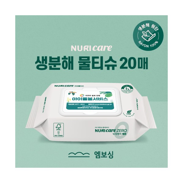 FSC인증 생분해 물티슈 그레이 캡형 20매 (엠보싱)