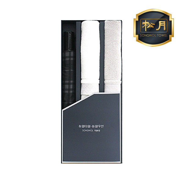 송월 우산 수건 콤보세트 SWU 2단 모던체크 1개 송월 풍차40 2장 3매입 세트